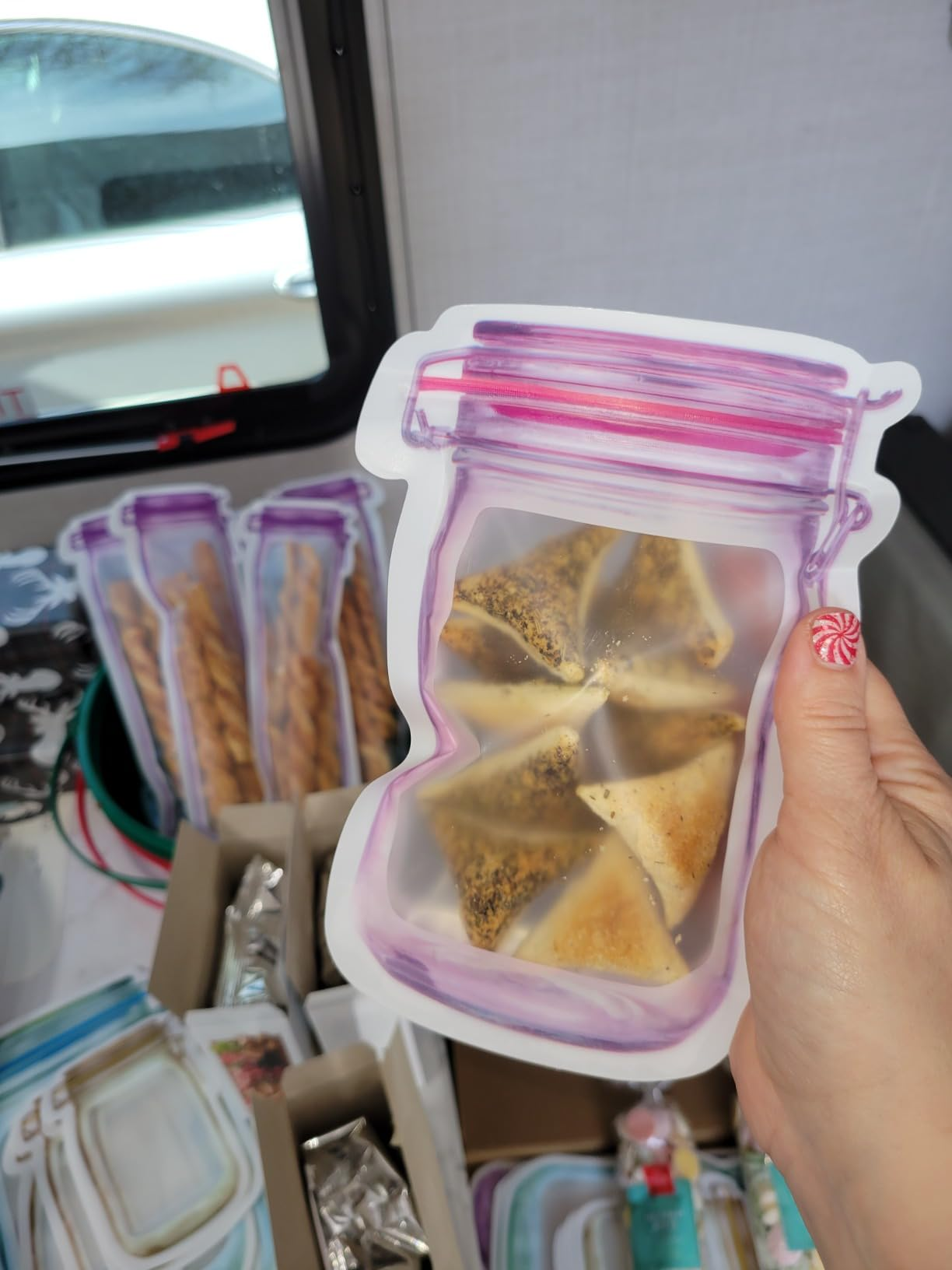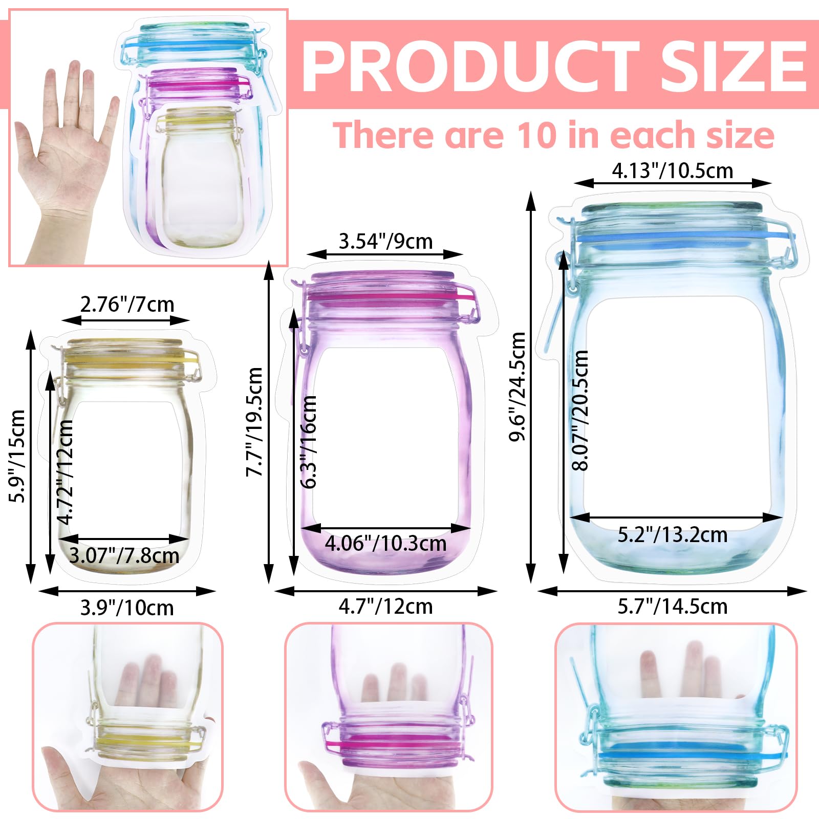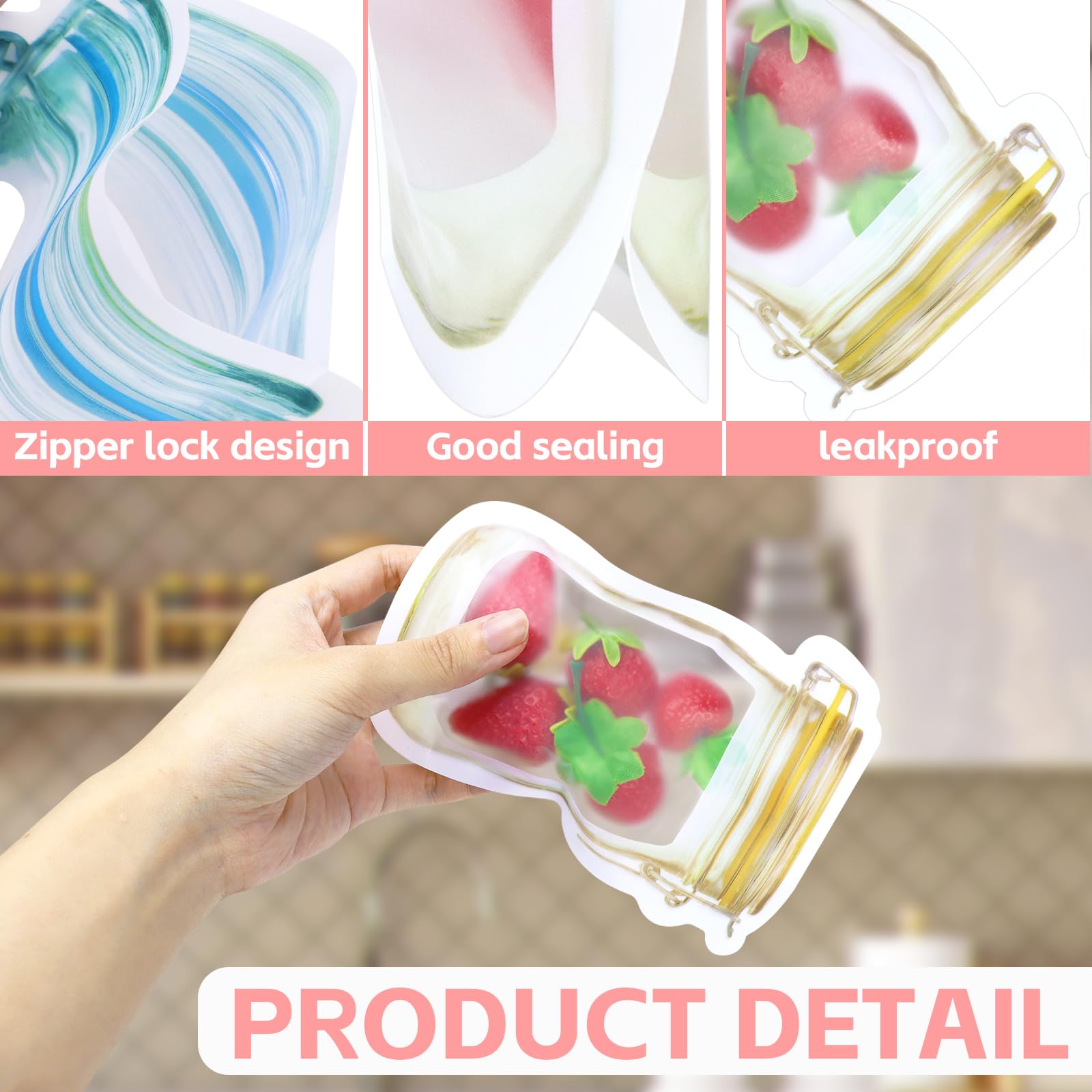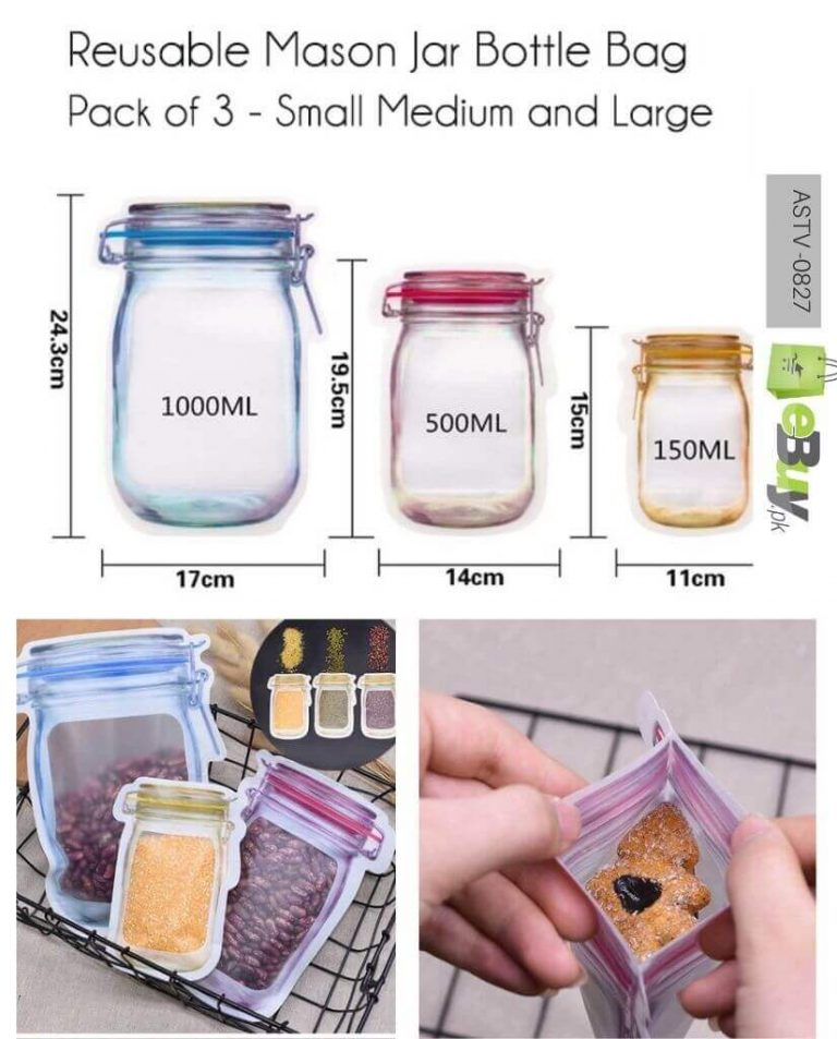 Now you can save a significant amount of space in the kitchen &fridge, keep your snacks neatly organizble Mason Bottle Ziplock Bat